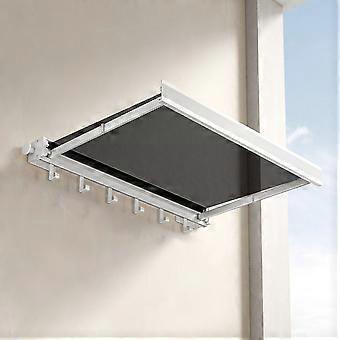 45cm Retractable Clothes Drying Rack Nail Free Folding Laundry Hanger with 6 Hooks for Balcony Bathroom