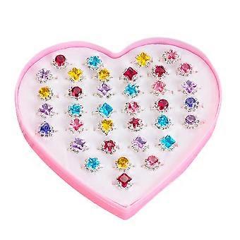 48Pcs Assorted Color Child Plastic Rings Heart-Shaped Gift Boxes for Tea Party Fun