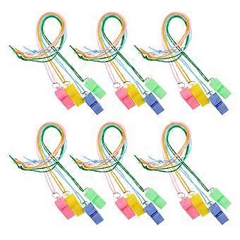 48Pcs Neon Design Whistle Necklaces For Kids Outdoor Assorted Color Portable And Lightweight