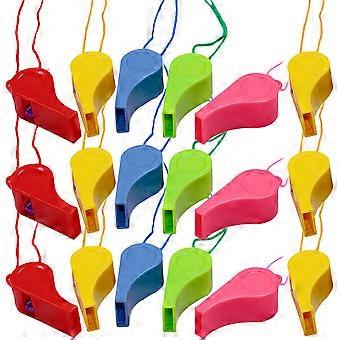 48Pcs Round Plastic Whistle With Lanyard For Party Games Emergency Signal Kids Toys