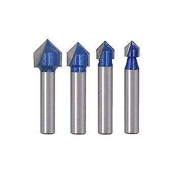 4PCS 6.35mm Shank V Groove Solid Carbide CNC Router Engraving 90 Degree V-Grooving Bit Woodworking Tools