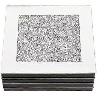 4pcs Modern Minimalist Glass Coasters with Silver Rhinestone Mirror Finish – Heat Resistant Decorative Cup Mats for Home, Bar, and Restaurant Table