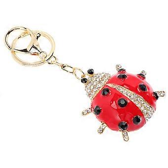 4Pcs Red Rhinestone Ladybug Keychain for Decoration Key Pendant Charm