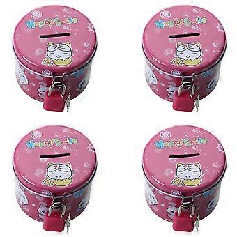 4X Cylinder Design Cartoon Print Piggy Bank Coin Money Saving Box W Padlock