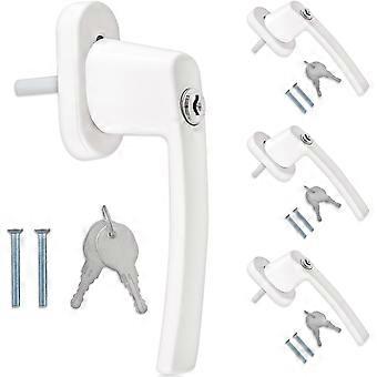 4x Lockable window handle - Handle with aluminum lock - Child safety - Shaft length 35 mm - Lock in white