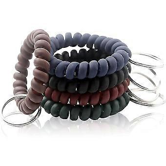 5 Color Wrist Keychain Plastic Spring Flexible Spiral Wrist Coil Stretchable Wrist Band Wristlet Keychain Bracelet Wrist Coil Key Chains Key Holder Ke