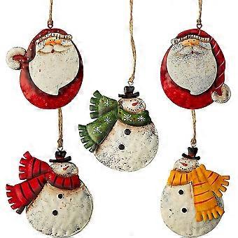5 Pack Rustic Metal Double-sided Christmas Tree Ornaments