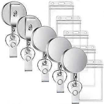 5 Pack Telescopic Metal Badge Holder with Keychain for ID Cards, Work Badges & Name Tags – Accessory for Nurses & Daily Use
