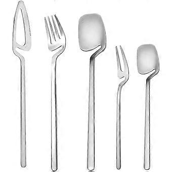 5 Packs Stainless Steel Shovel Spoon Set Creative Spade Spoon Fork SetTeaspoons Hung From the Side of the Cup