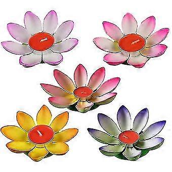 5 Pcs 12cm Water Floating Candle Lanterns, Floating Lotus Lights Wishing Lotus Candles Light Pool De
