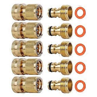 5-Piece Set of Garden Hose Brass Quick Connectors GHT Threaded Connection Accessories Water Pipe Le