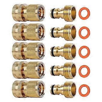 5-Piece Set of Garden Hose Brass Quick Connectors GHT Threaded Connection Accessories Water Pipe Leak-Free Connectors