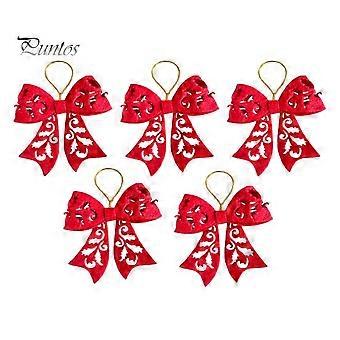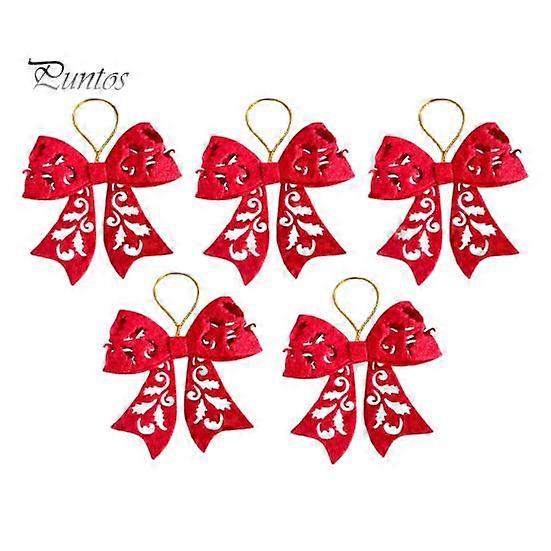 5Pcs Christmas Tree Bow Pendants Bright Color Hollow-out Design DIY Christmas Tree Hanging Decorations