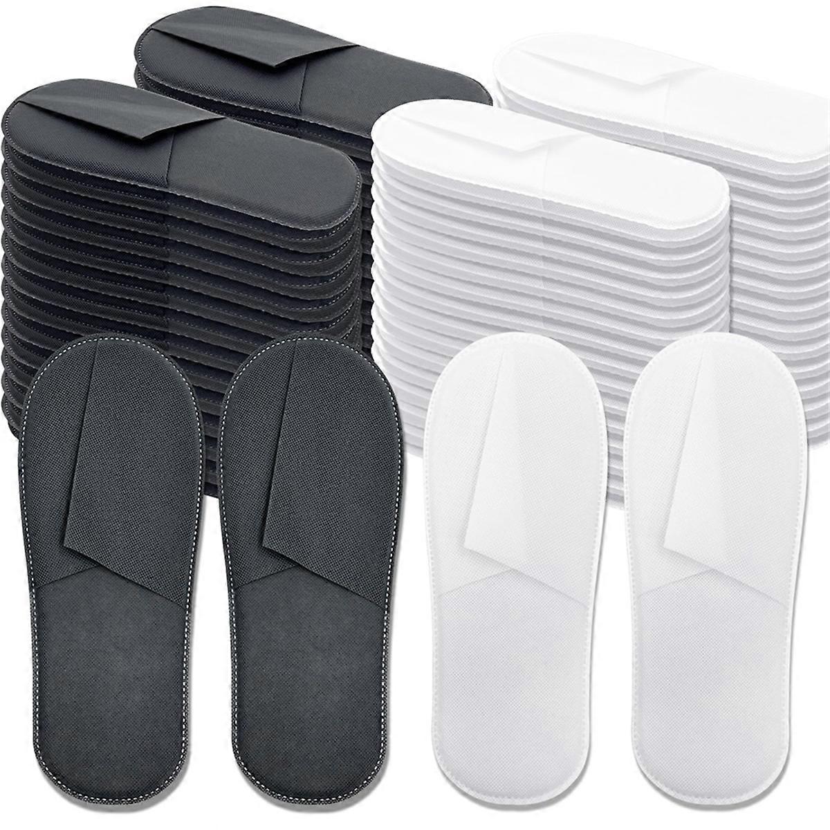 50 Pairs Disposable Slippers Bulk,25 White and 25 Grey Disposable Slipper, Hotel, Spa Slippers Close