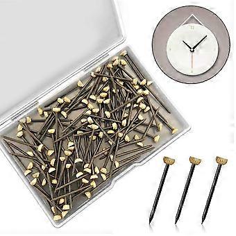50 Brass Picture Pins for Hanging - 1-Inch Picture Hangers with Storage Box - Ideal for Securely Mounting Frames on Hard Walls