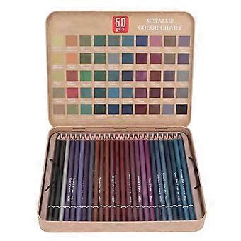 50 Metallic Colored Pencils Set for Adult Artists Easy to Grip Eco Friendly Drawing Pencil Set for Sketching
