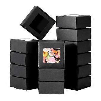 50 Pieces Mini Kraft Paper Box with Window Present Packaging Box Treat Box for Homemade Soap Treat Bakery Candy (Black)