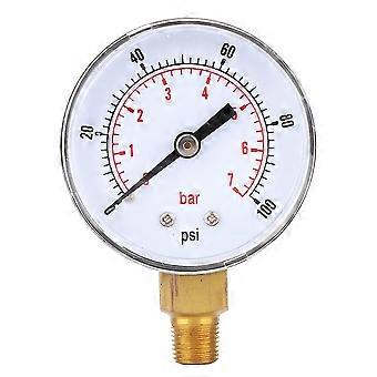 50mm Dial Pressure Gauge 18 BSPT Bottom Connection compatible with Air Water Oil Gas (0-100PSI 0-7Bar)