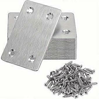 50pcs/10sets Metal Stainless Steel Straight Pieces, Four Hole Corner Codes, One Line Flat Fixed Code 10pcs, Countersunk Screws 40pcs, for Furniture, W