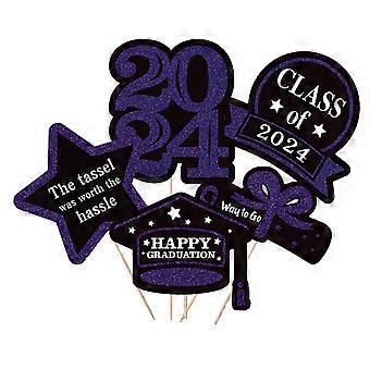 5Pcs/Set The Class of 2024 Glitter Graduation Centerpiece Sticks Set Table Vase Toppers Graduation Party Decor