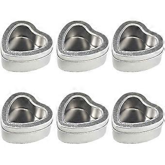 6-pack 4oz Empty Heart Shaped Silver Metal Tins With Clear Window For Candle Making, Candiessliver