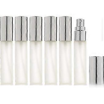 6 Pack Frosted Glass Spray Bottles - 10ml - Refillable - For Perfume (Silver)