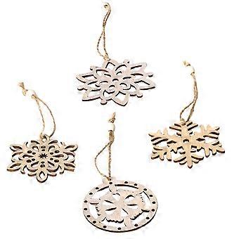 6 Pcs Christmas Wooden Ornaments Snowflake Hanging Decor For Wall Window And Tree Decoration