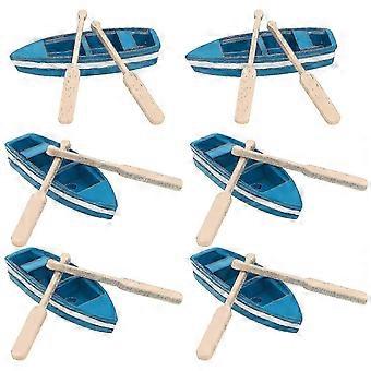 6 Pcs Mini Wooden Row Boat Models with Oars for Nautical and Ocean Room Decor