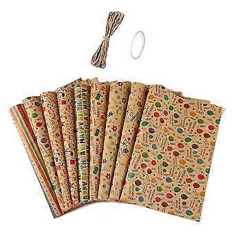 6 Pcs Wrapping Paper Sheets,birthday Wrapping Paper Set Festival Gift Wrap Papers,hemp Rope Present