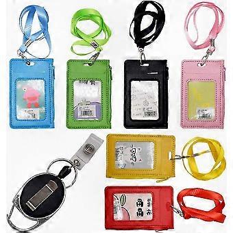 6 Pieces Durable Leather ID Badge Holder with Neck Strap Set