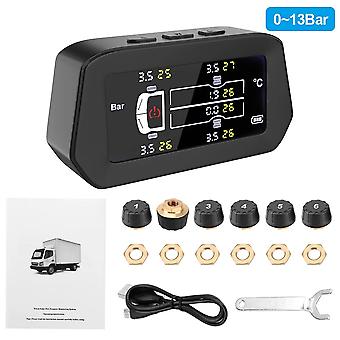 6 Sensors Solor Tpms Truck Tyre Pressure Monitoring System 0-13bar Digital Display Tire Diagnose Freight Car Oversize Vehicle