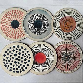 6 sets of circular patterned printed wooden anti-slip coasters, suitable for theme party decoration anti-slip coasters