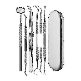 6pc/box Dental Mirror Kit Sickle Tartar Scaler Pick Spatula Silver Box Dental Instruments Dentist To