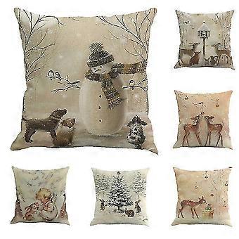 6pcs Christmas Deer Snowman Pattern Pillow Case Square Cotton Linen Cushion Cover For Car 45x45cm