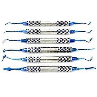 6Pcs Dental Instrument Composite Resin Filling Spatula Titanium Plated Filler Dental Tool Set(Blue) js