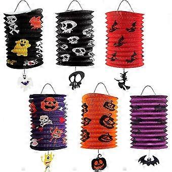 6pcs Halloween Paper Lantern Decoration , Hanging Folding Paper Lanterns Ghost Spider Witch Pumpkin Lamp (paper, 6pc)