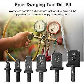 6pcs Swaging Tool Drill Bit Set Tube Pipe Expander for Air Conditioner Refrigeration HVAC Installtion and Repair