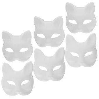 6Pcs White Cat Masks Paintable Blank Masks for Halloween Costume