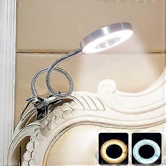 6w Clip-on Usb Desk Lamp Clamp Reading To Bed, Warm And Cool White Light, Silver Metal Flexible Gooseneck (adapter Not Included)[energy Class A++]