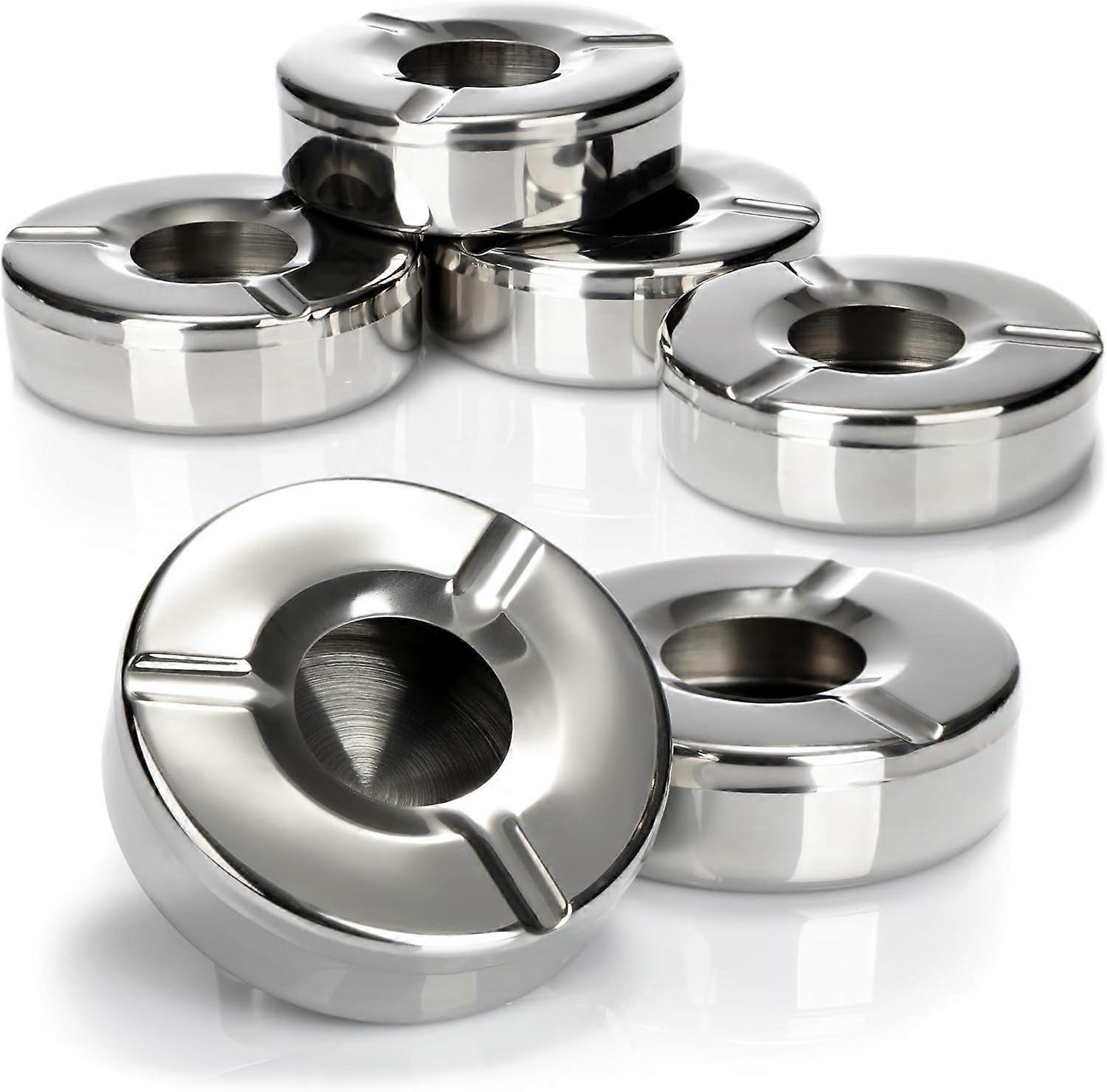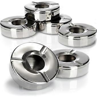 6X Stainless Steel Ashtrays - Wind Ashtray with Removable Lid to Protect Against Flying Ashes - 11 cm (6 pieces - Stainless Steel)