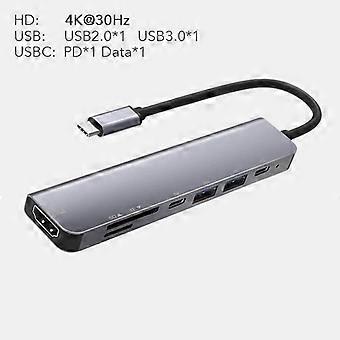 7 in 1 Type C USB 3.1 HDTV 4K 60Hz Video USB 3.0 USB2.0 SD TF Card Slot Reader Data USB-C PD Charging Hub Adapter for Macbook