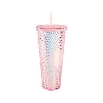 710ML/24OZ Large Capacity Water Cup Fully Studded Matte Tumbler Reusable Plastic Cup with Wide Opening Leak-Proof Lid Straw