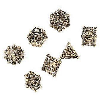 7pcs Polyhedral Dice Set Hollow Carving Dragons Pattern Copper Board Game Dice Set for Role Playing