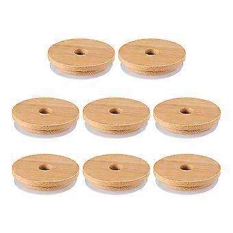 8pcs Bamboo Jar Lids with Sealing Ring, Reusable Can Lids for Mason Jars, Yogurt & Drink Containers, Smooth Surface Covers for Kitchen Canning