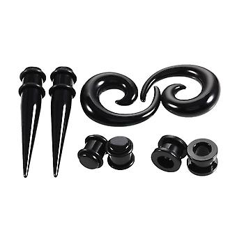 8pcs Black Ear Stretching Kit Acrylic Tapers, Tunnels, 6mm Spiral Snail Plugs