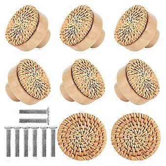 8Pcs Bohemian Rattan Wooden Handles Rustic Vintage Style Single Hole Handles for Cabinets Furniture KAESI