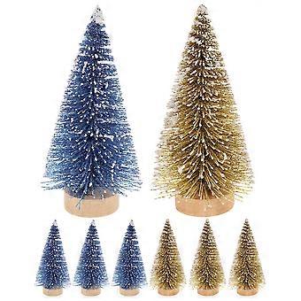 8pcs Mini Pine Tree Christmas Decorations with Wooden Base – Festive Tabletop Trees for Holiday Crafts, Parties & Mini Landscape Displays