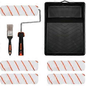 8Pcs Paint Roller Brush Kit Wall Ceiling Painting with Reservoir Roller Handle Paint Tray Sleeves