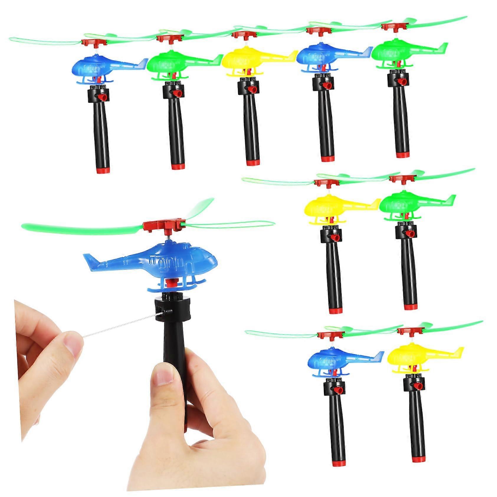 9 Pieces Aeroplane Toys Helicopter with Pull Cord Outdoor Toys for Rotating Helicopter Toy for Garden Parties and Birthday Parties