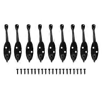 9 Pack heavy duty Coat Hooks for Hat hardware Dual Retro Coat Hanger with 20 Screws Black Color